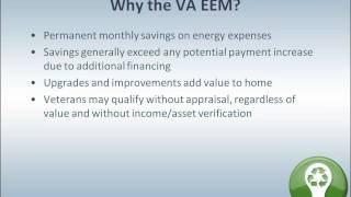 What Is An Energy Efficient Mortgage An Eem Is A Loan Made In Conjunction With A Va Purchase Loan For An Existing Dwelling Or A Refinance Loan Secured Ppt Download